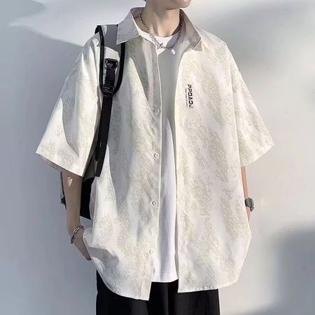 High-Grade Drape Ice Silk Shirt Men's Short-Sleeved Loose Shirt