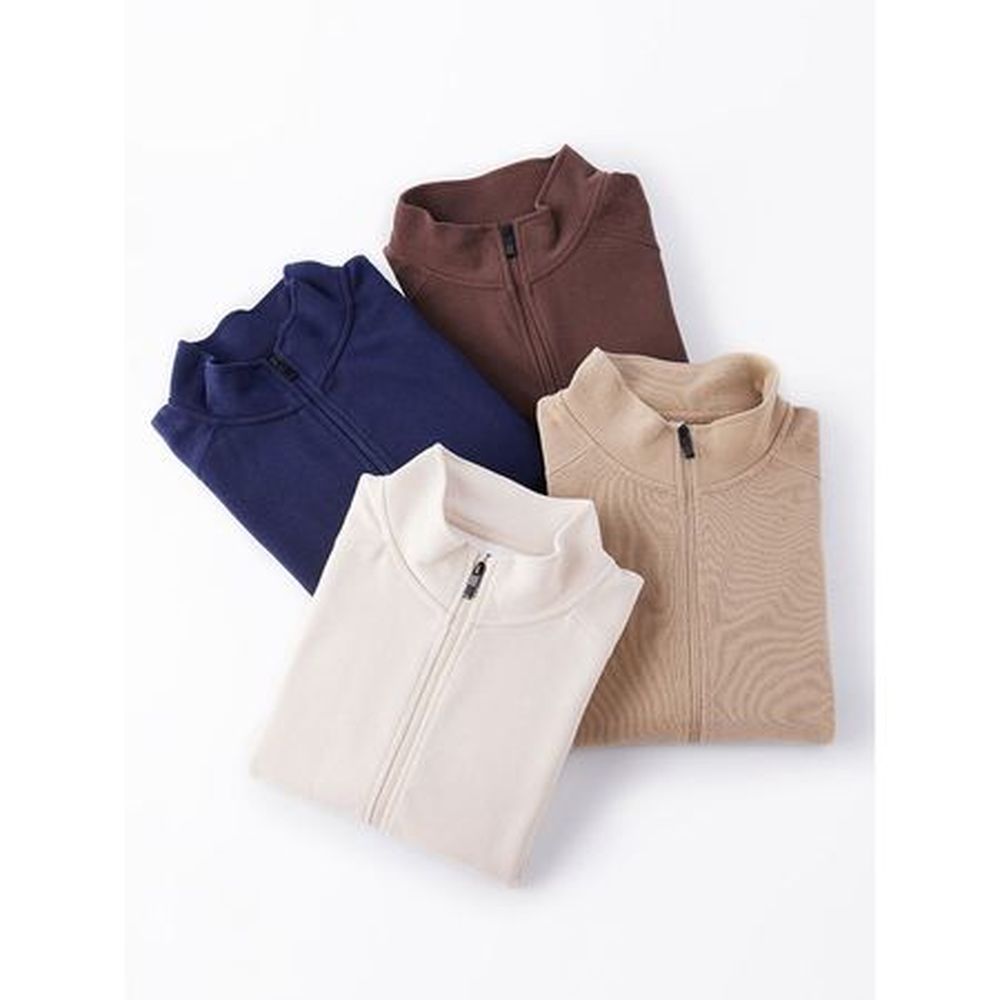 Solid Color Loose Drop Shoulder Stand Collar Sweatshirt Men's Zipper Jacket